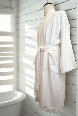There is a special moment when you slip into one of our bathrobes—a gentle pause in everyday life, when everything becomes softer and slower. Inspired by ancient weaving traditions, crafted from weavers on a traditional loom, made from pure organic cotton and fine linen, each bathrobe radiates the warmth of human hands and the tranquility of thoughtful design. Soft, cozy, gentle, and beautifully textured, it envelops your skin.
